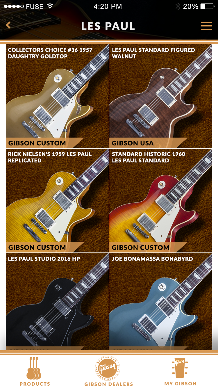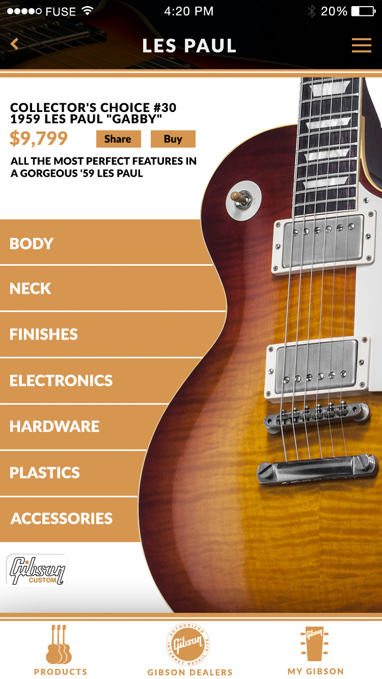Pitch-designed the Gibson guitar app’s UX/UI, including product lineups and the profile page, and animated a prototype UI motion.